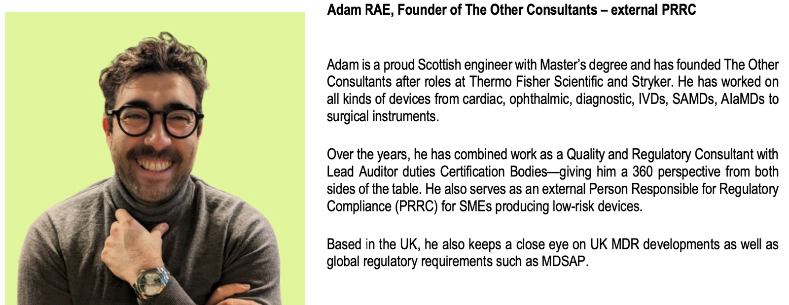 - Adam RAE, Founder of The Other Consultants – external PRRC