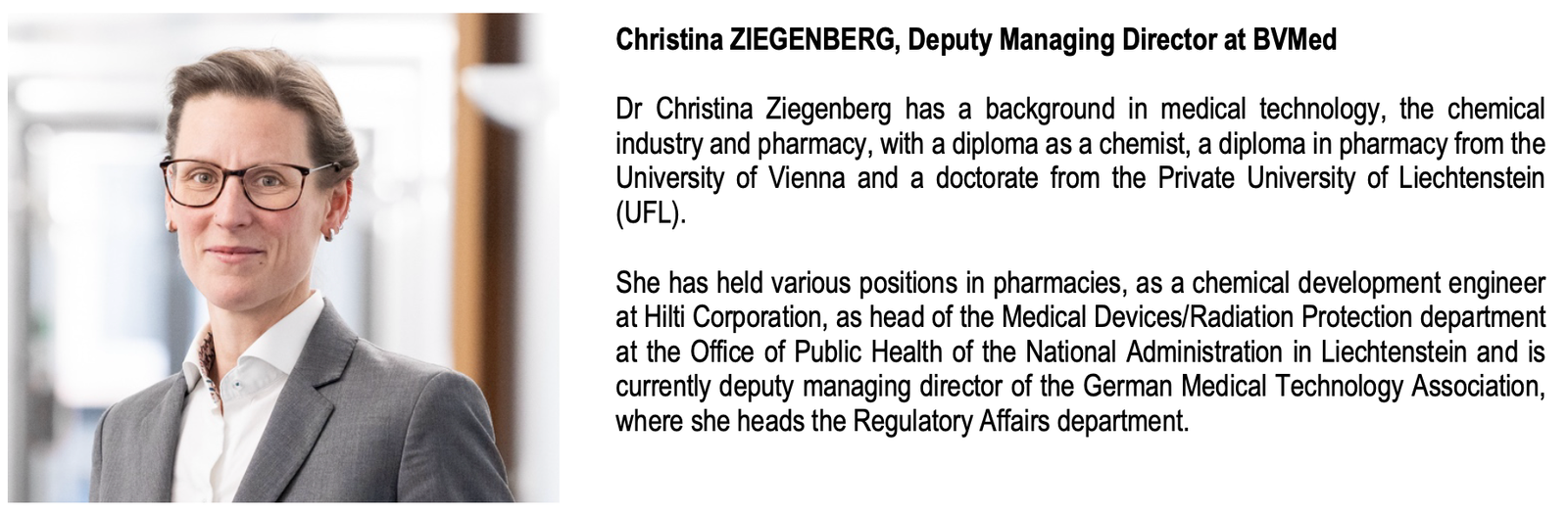 - Dr Christina ZIEGENBERG, Deputy Managing Director at BVMed