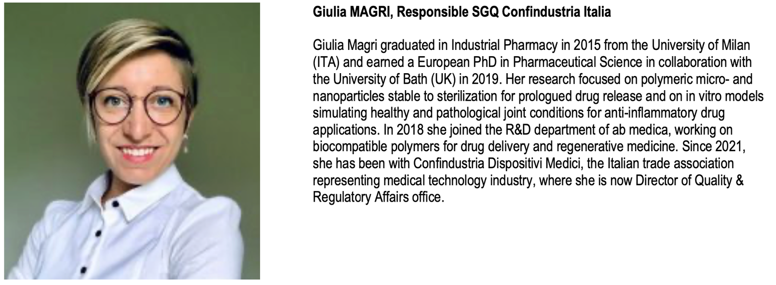 - Giulia MAGRI, Responsible SGQ Confindustria Italia